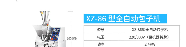 名稱BZ-30型單餡斗包子機 電源220/380V(見機器名牌) 功率2.5kw 產(chǎn)量1800個/小時 尺寸1440*680*1470mm 重量300kg 規(guī)格25-100克/個 其他