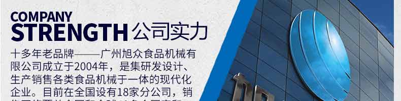 廣州旭眾食品機(jī)械有限公司是一家集科研開發(fā),生產(chǎn)設(shè)計(jì),營銷服務(wù)為一體的現(xiàn)代化生產(chǎn)企業(yè)?,F(xiàn)代化生產(chǎn)車間,精湛制造技術(shù),所產(chǎn)機(jī)械歷經(jīng)市場重重考驗(yàn),不斷贏得海內(nèi)外客戶的贊譽(yù)。