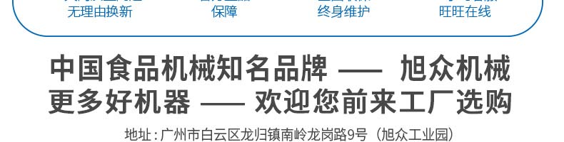 廣州旭眾食品機(jī)械有限公司是一家集科研開(kāi)發(fā),生產(chǎn)設(shè)計(jì),營(yíng)銷服務(wù)為一體的現(xiàn)代化生產(chǎn)企業(yè)?,F(xiàn)代化生產(chǎn)車間,精湛制造技術(shù),所產(chǎn)機(jī)械歷經(jīng)市場(chǎng)重重考驗(yàn),不斷贏得海內(nèi)外客戶的贊譽(yù)。