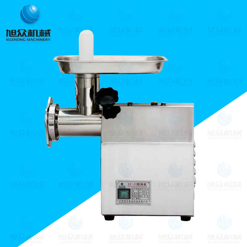 SZ-22 電動絞肉機,電動絞肉機的??字睆綖?、8mm,本機優(yōu)點具有電耐用、方便快捷、結構緊湊、外形美觀、操作方便、效率高、耗電少、清潔保養(yǎng)容易、安全衛(wèi)生等優(yōu)點。采用全封閉齒輪傳動,結構緊湊,運轉平穩(wěn),工作可靠,且維修方便;絞肉機頭及接觸食品的零部件都采用不銹鋼制造,安全無污染;機殼線條流暢,沒有可污的縫隙及無傷害操作者的銳邊,易于清潔。