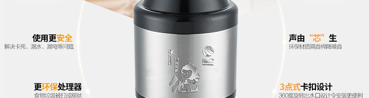 DCLQ40-廚房垃圾處理器,該機是一種現(xiàn)代化的廚房電器,它用全新的方法來處理現(xiàn)代家庭中的食品廢物。處理器裝于廚房水槽下,能夠有效地將食物垃圾研磨成細(xì)小顆粒,直接從下水管道排出,從而輕松實現(xiàn)及時方便快捷的廚房清潔,優(yōu)化家居環(huán)境。
