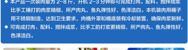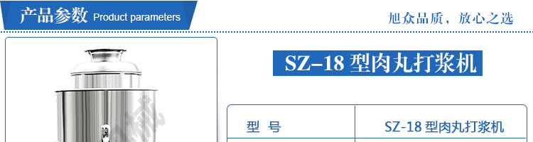 SZ-18型肉丸打漿機,本機裝肉用桶子采用不銹鋼制造,達到衛(wèi)生要求,肉桶外罩和桶底裝有冷卻裝置,確保肉漿新鮮。比手工的打漿更精細,所產(chǎn)肉丸、魚丸彈性好,色澤潔白。