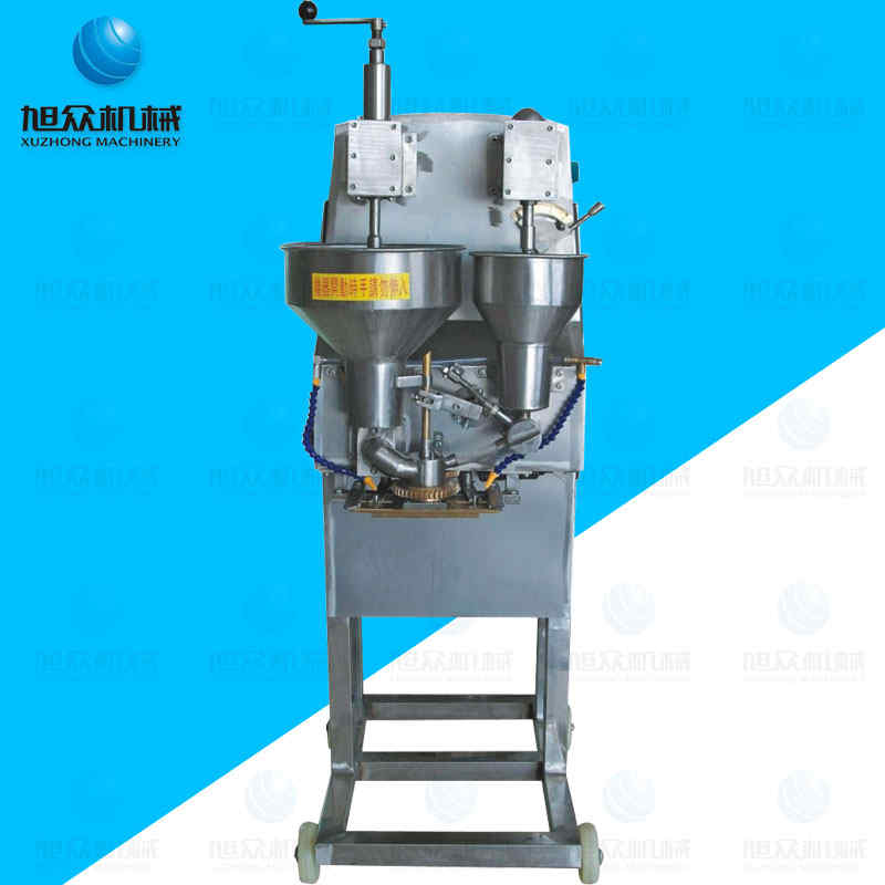SZ-606包心肉丸機(jī),本機(jī)操作簡單,肉餡居中,低破餡,能生產(chǎn)直徑由28-40mm等規(guī)格的圓型魚丸肉丸。可生產(chǎn)包心魚丸、包心豬肉丸、撒尿牛肉丸等多種球形醬湯類包餡產(chǎn)品。