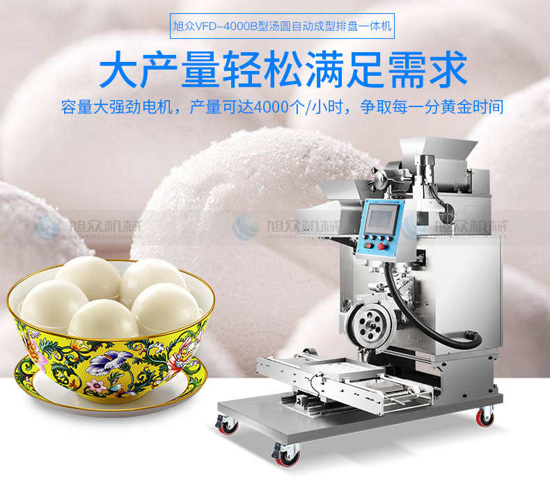 VFD-4000B湯丸機,告別手工時代旭僉多功能湯圓機輕松解決問題。大產(chǎn)量輕松滿足需求容量大強勁電機,產(chǎn)量可達4000個小時,爭取每一分黃金時間